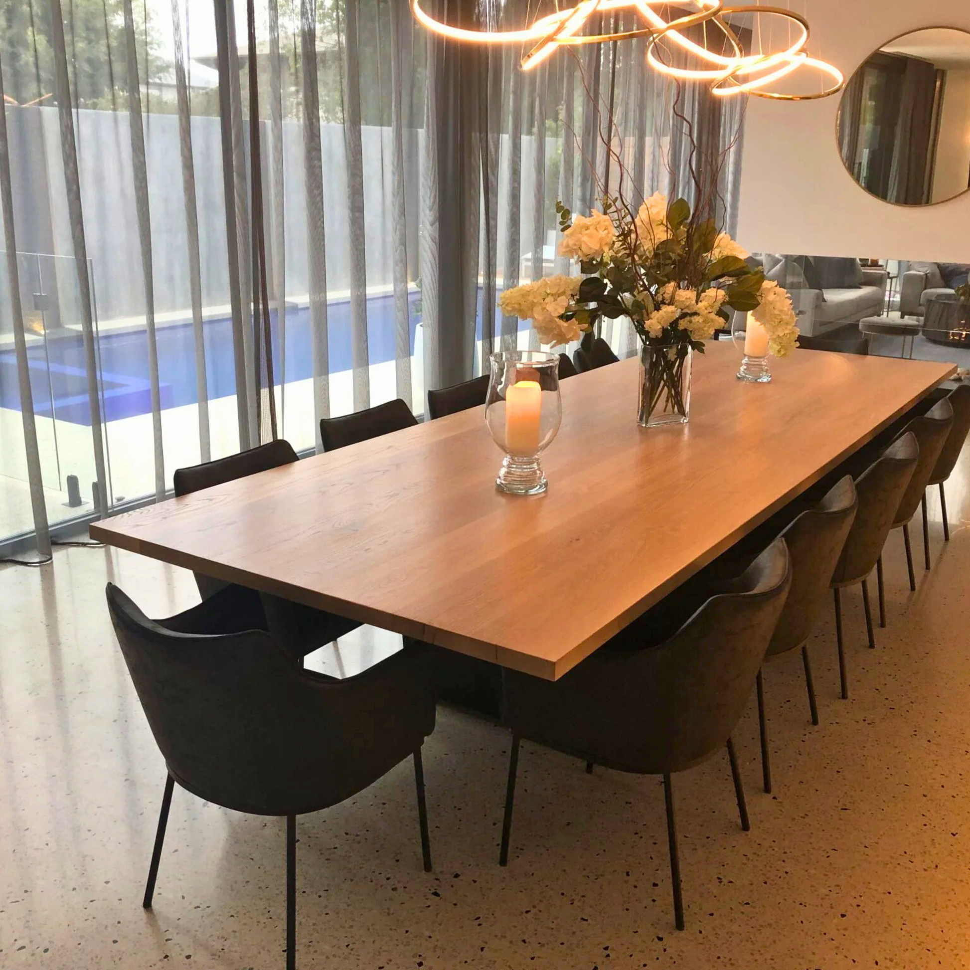 140cm W x 3m L x 76cm H x 4cm thickness (10-12 people) |