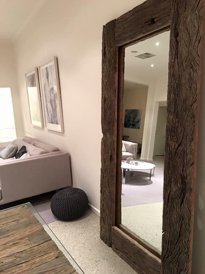 The price $2400 is for a very large 1.8 metres tall x 1.3 metres wide floor standing mirror reclaimed brush box from Princess Pier.
